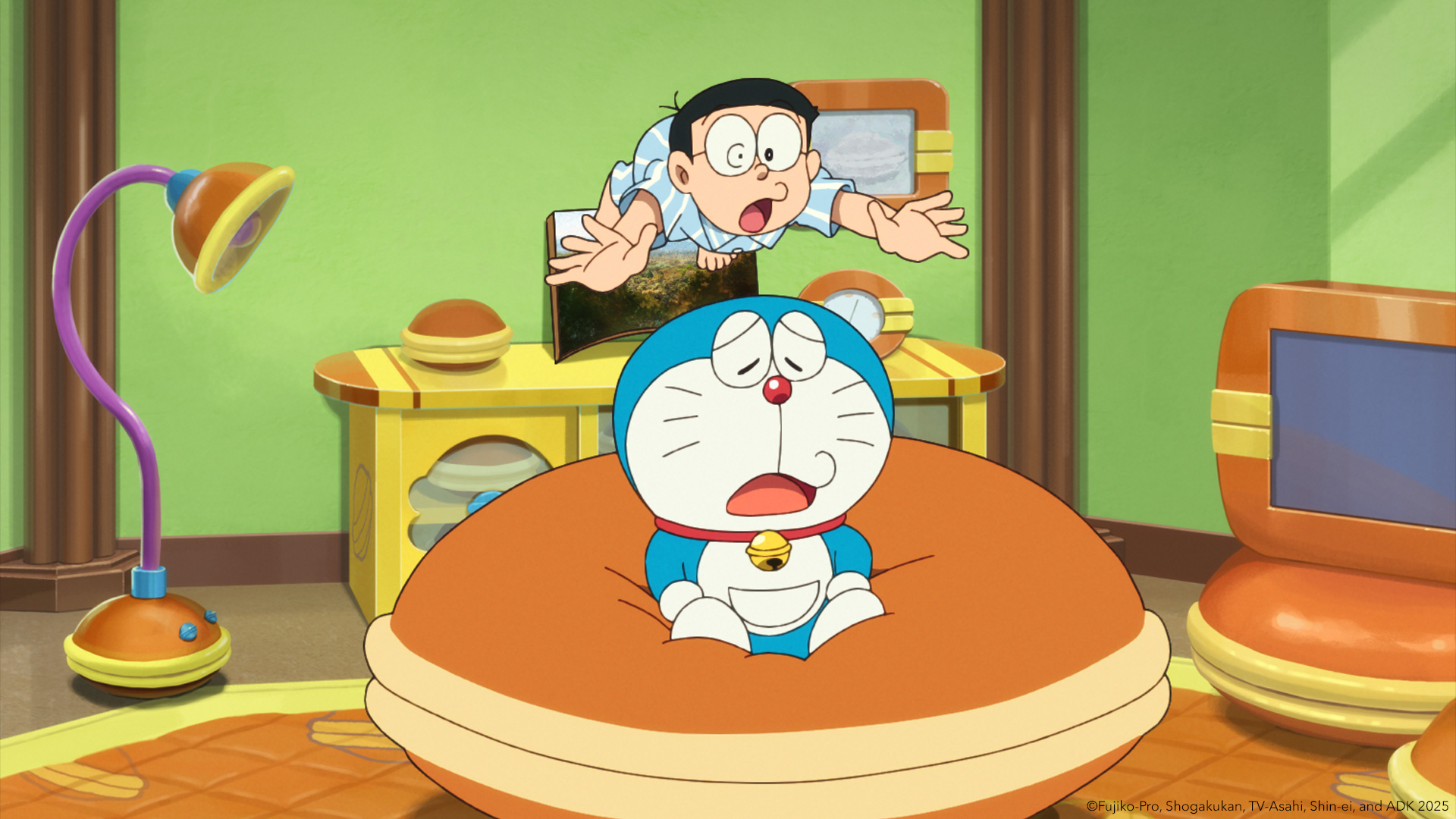 Doraemon, Nobita y sus amigos entran dentro de una pintura que los transporta a Artelia, un mundo ilustrado inspirado en la Europa medieval. Junto a Claire y sus amigos Milo y Chai, se embarcan en una gran aventura para recuperar una misteriosa piedra azul.
